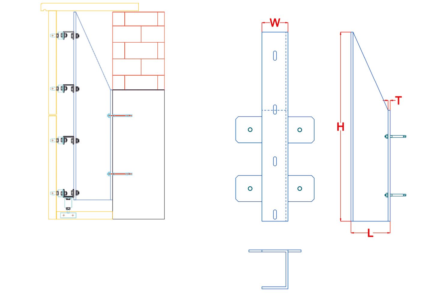 Анкер балки тип 1 — это крепёжный элемент высшего сегмента, разработанный для фиксации вертикальной несущей системы к балкам здания при механическом монтаже фасадов. По сравнению со стандартной моделью имеет большую толщину стенки корпуса и увеличенную площадь монтажного основания. Такая конструкция обеспечивает максимально надёжную передачу вертикальных нагрузок от тяжёлых прекast-панелей или крупноформатной каменной облицовки, а также вырывающих усилий от ветра на железобетонную балку. Корпус, изготовленный из алюминиевого сплава 6063-T6, обеспечивает гибкость и высокую стойкость к разрушению при сейсмических воздействиях.